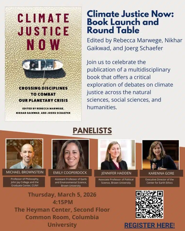 On Thursday March 5, CEE Executive Director will join a roundtable discussion marking the launch of “Climate Justice Now: Crossing Disciplines to Combat our Planetary Crisis”—a new volume from Columbia University Press edited by Rebecca Marwege, Nikhar Gaikwad and Joerg Schaefer. Karenna will join Jennifer Hadden and Emily H. G. Cooperdock of Brown University, and Michael Brownstein of CUNY to discuss the new volume and the current challenges facing the climate justice movement.